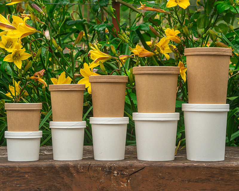 Our soup cups come in a variety of sizes, so you're sure to find one that perfectly suits your business. They are ideal for soups, sauces, gravy, or snacks. Available in 2oz, 4oz, 8oz, 12oz, 16oz and 26oz